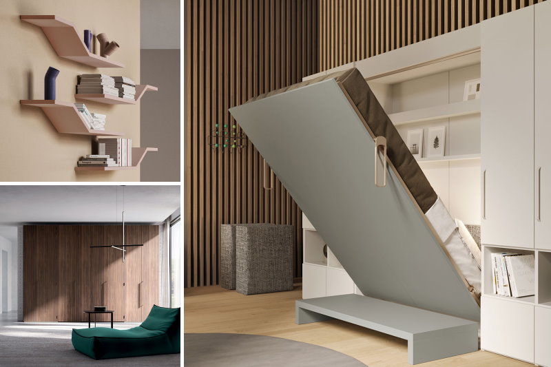 pareti attrezzate, letti richiudibili, mobili-armadio e guardaroba multifunzione e crea un total living su misura per te.